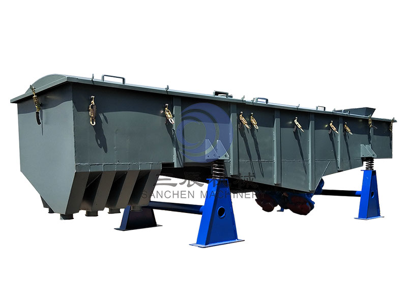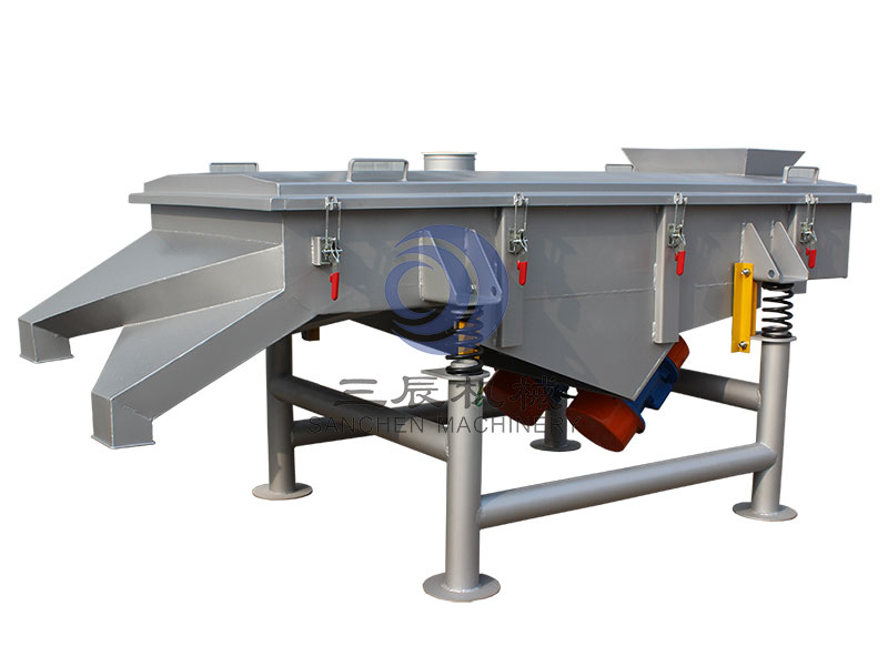 1.SC系列直線振動篩利用雙振動電機(jī)激振作為振動源,使物料在篩網(wǎng)上被拋起,同時向前做直線運(yùn)動,通過多層篩網(wǎng)產(chǎn)生數(shù)種規(guī)格的篩上物、篩下物,分別從各自的出口排出。